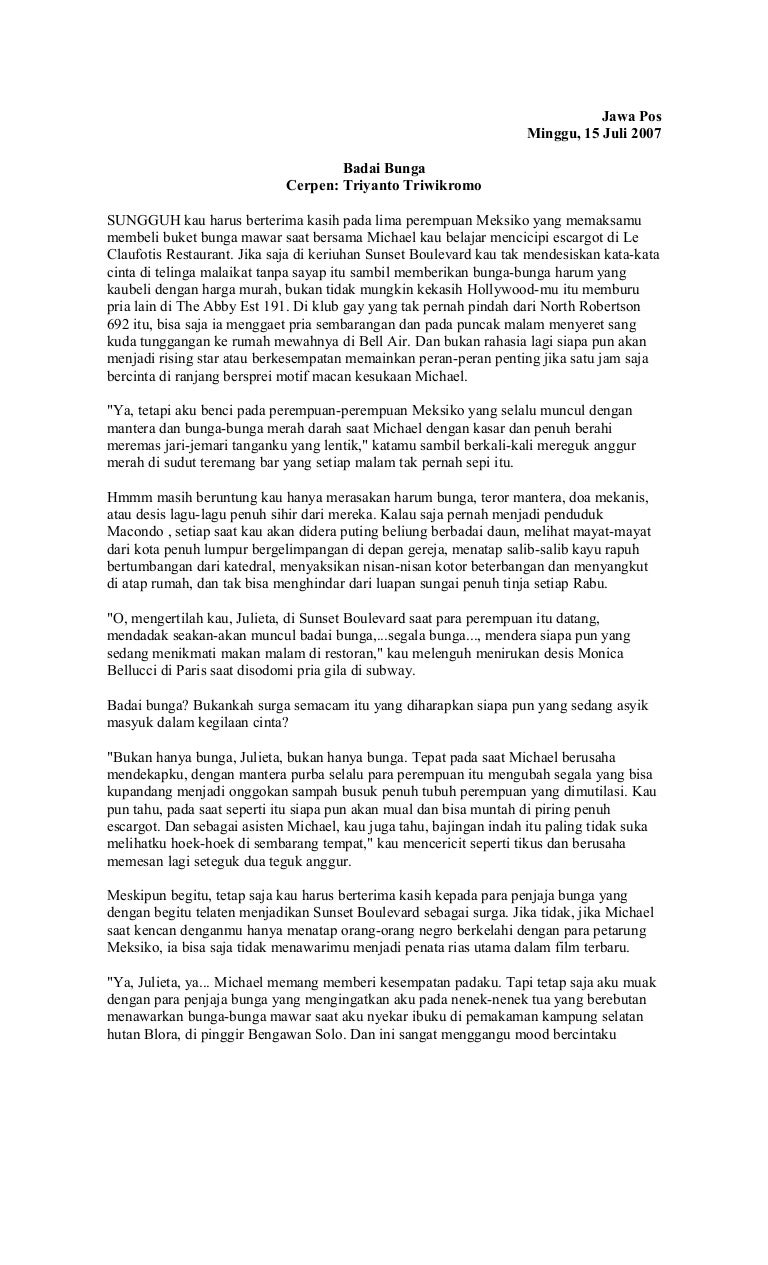 Doc Cerpen Aku Masih Lagi Setia Padamu Afifa Fadzil Academia Edu from 0.academia-photos.com Padahal aku merasa biasa saja. Ada beberapa contoh contoh cerpen majalah, koran ataupun buku. Sejak kecelakan itu aku malas bertemu lelaki mana pun. Andre mengangguk dan senyum, kemudian dia memelukku dengan lembut. Struktur cerpen terdiri dari abstrak, orientasi, komplikasi, evaluasi, resolusi, dan koda. Selain itu dalam cerpen terdapat 6 elemen penting yang membangun teks cerpen singkatan dari cerita pendek. Padahal baru mau aku ajakin main, eh dianya ilang,' titit gue bisa beneran dipretelin sama suaminya si tante. Tidak, kau tidak bermimpi, kita tidak sedang bermimpi.