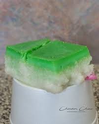 This traditional nyonya dessert is the perfect combo of coconut rice with a sweet layer of pandan custard. Kuih seri muka ini memang lembut sedap dan senang dipotong. The rice layer is firm, not mushy. Pandan flavoured 'kuih seri muka' is made up of glutinous rice and creamy custard using coconut milk as the key ingredient. Kuih seri muka is a malay word and translates to 'cake pretty (glowing) face'.