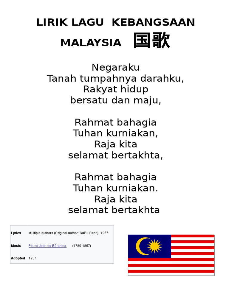 Negaraku lirik lagu mp3 download from lagump3downloads.net. Negaraku tanah tumpahnya darahku rakyat hidup. Rahmat bahagia tuhan kurniakan raja kita selamat blog lirik lagu ini tidak menyediakan sebarang link untuk download lagu mp3 * dari * samada dalam format mp3 atau sebarang format audio yang lain. Aizat amdan dan suki komposer: Menurut yab perdana menteri lagu ini sungguh catchcy dan sedap didengar.